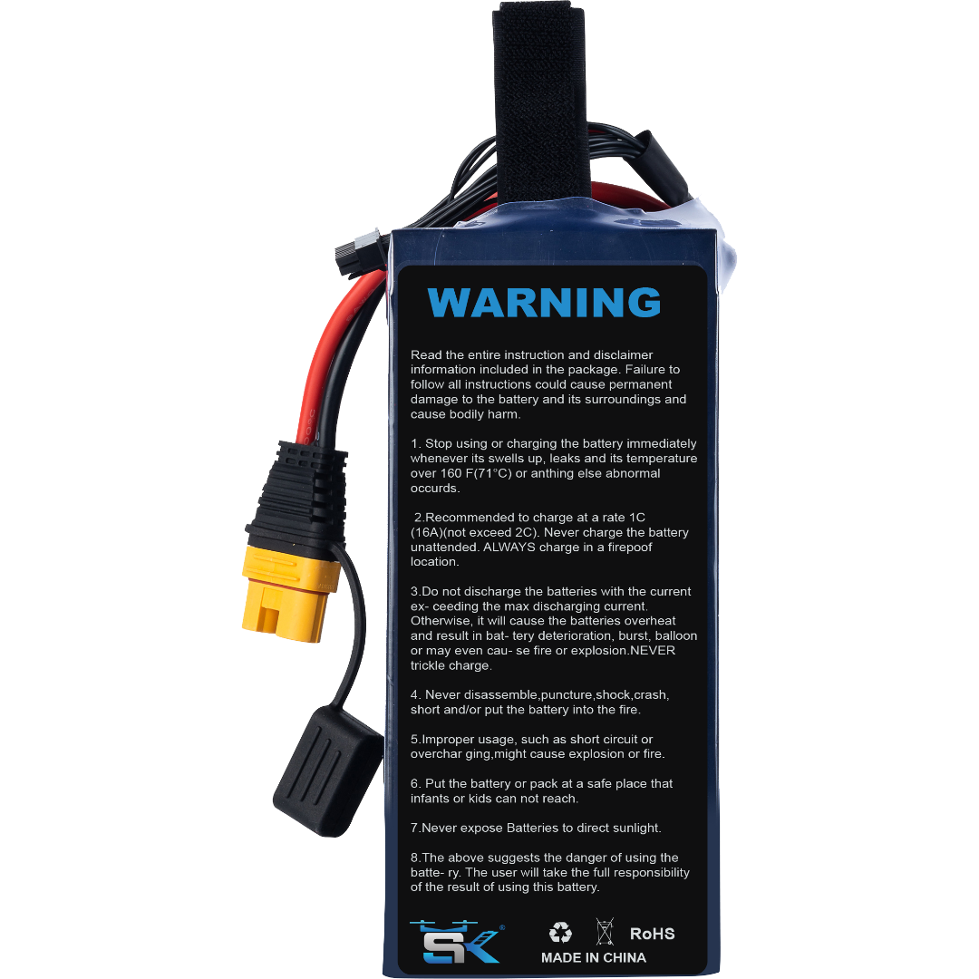 Engineered for flexibility, the SK LiHv battery supports customization options including voltage, capacity, temperature tolerance, and discharge rate—making it the perfect match for specialized UAV platforms. Whether your drone requires optimized voltage for a heavyweight payload, or higher discharge power for fast-response missions, this battery is built to adapt and exceed expectations.