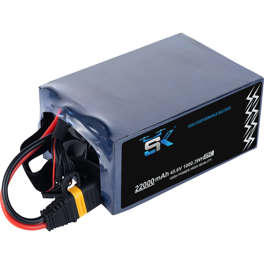 The SK 22000mAh 12S 25C 45.6V LiHv UAV Battery is engineered for the next generation of professional drone systems that demand extreme power, long endurance, and stable high-voltage output. Designed with cutting-edge LiHv technology, this powerhouse battery provides exceptional capacity, rapid discharge capability, and reliable performance for mission-critical operations.