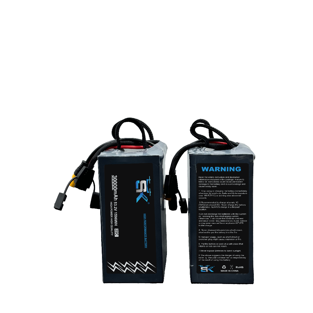 The SK 30000mAh 14S 25C 53.2V LiHv UAV Battery is engineered for high-performance drones requiring maximum power, extended flight times, and consistent output under demanding conditions. Designed with advanced LiHv technology, this battery delivers exceptional energy density and reliability, making it ideal for industrial, commercial, and professional UAV applications.