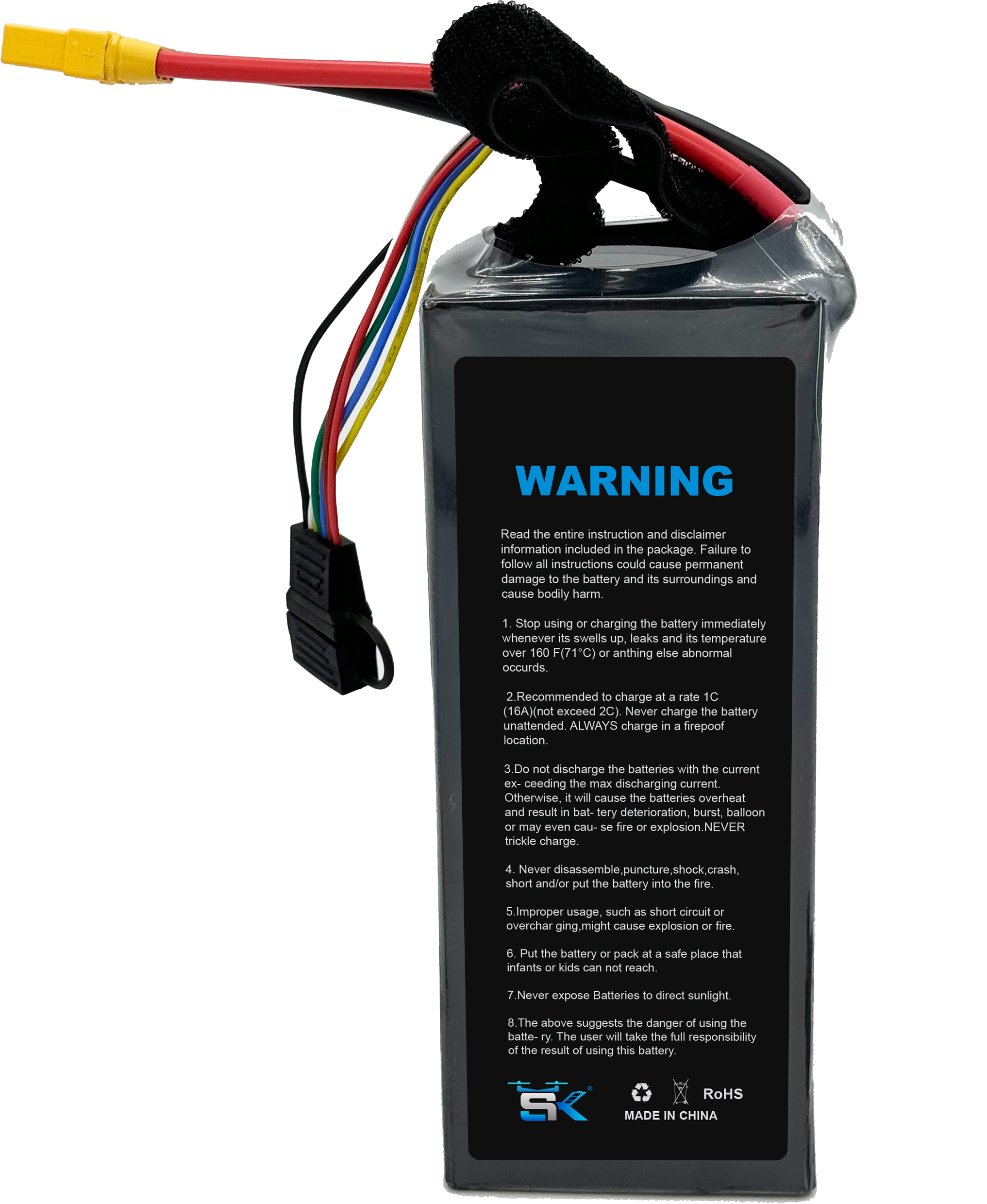 The SK 16000mAh 6S 25C 22.2V LiPo Battery is engineered for next-generation UAV performance, delivering exceptional power, stability, and efficiency for demanding aerial missions. Designed using advanced layered-cell technology, this high-capacity soft-pack battery ensures extended flight endurance, strong burst power, and reliable voltage output, making it ideal for professional-grade drones and industrial applications.