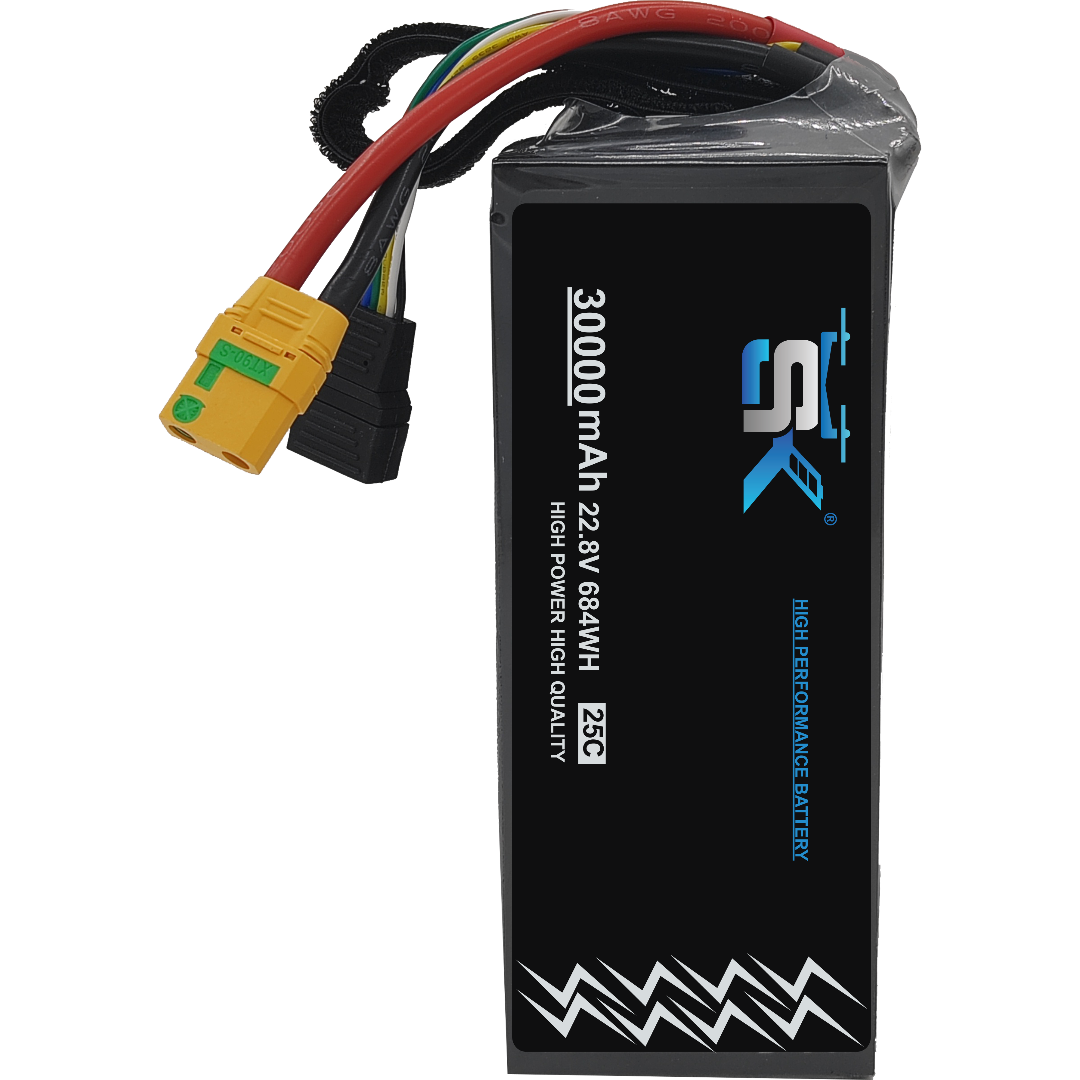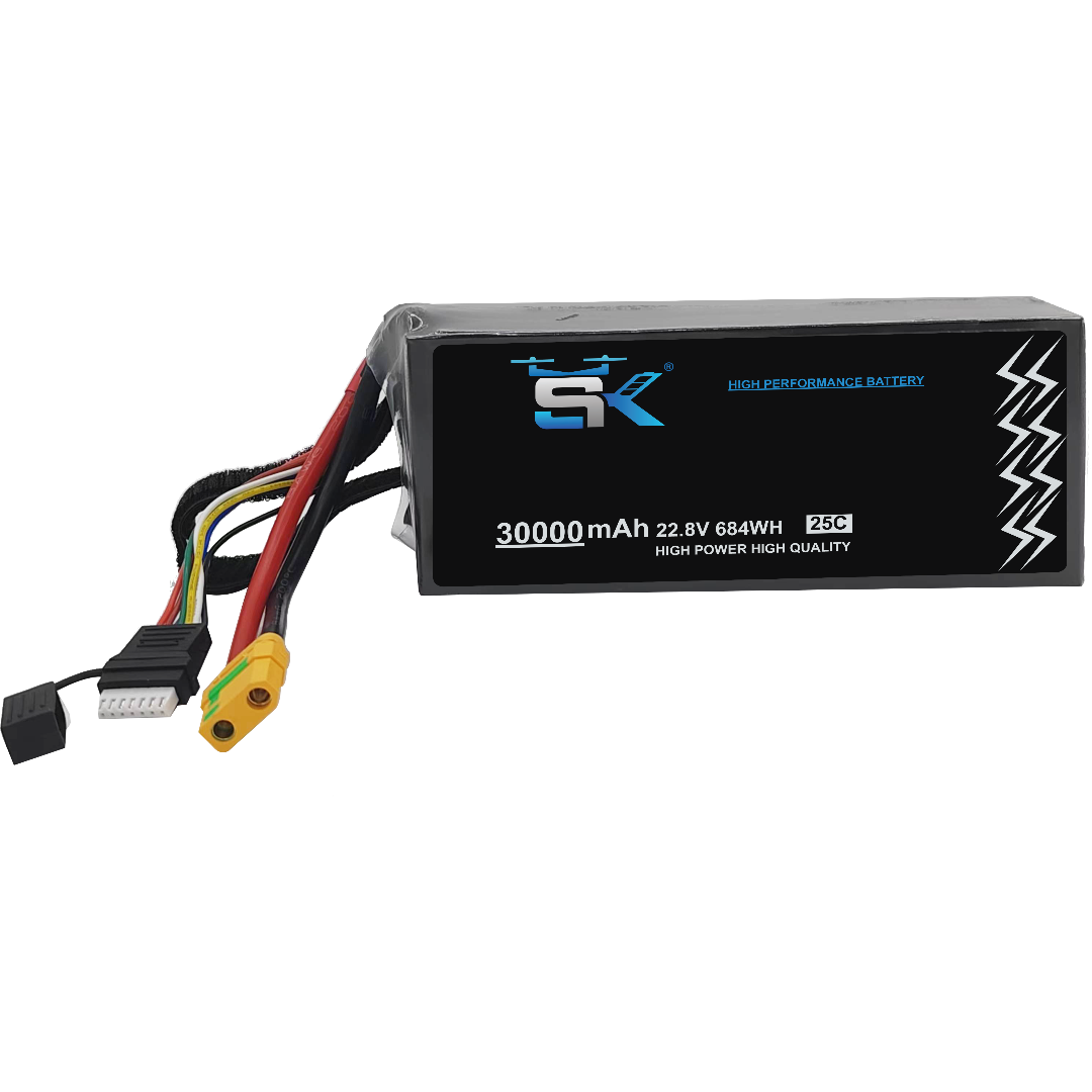 The SK 30000mAh 6S 25C 22.8V LiHv Soft Pack Battery is a next-generation high-performance power solution engineered for professional UAV platforms that require maximum endurance, stable voltage output, and reliable high-load performance. Built with advanced LiHv technology, this pack delivers a massive 30000mAh capacity, enabling significantly longer flight durations—perfect for long-range surveys, agricultural mapping, inspection missions, heavy-lift drones, and multi-rotor endurance flights.